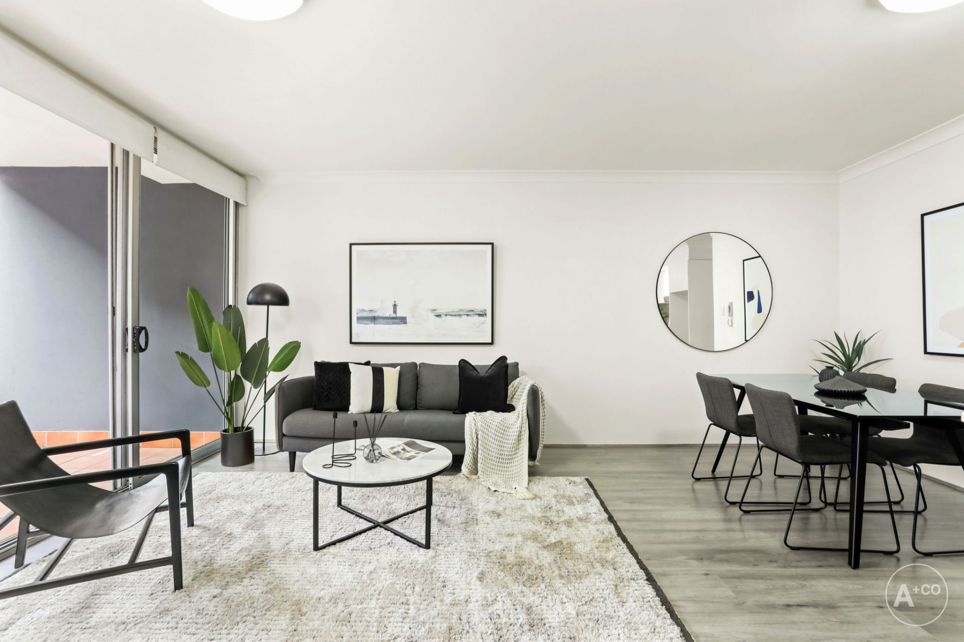 + Inviting open-plan living and dining area seamlessly extends to a spacious balcony