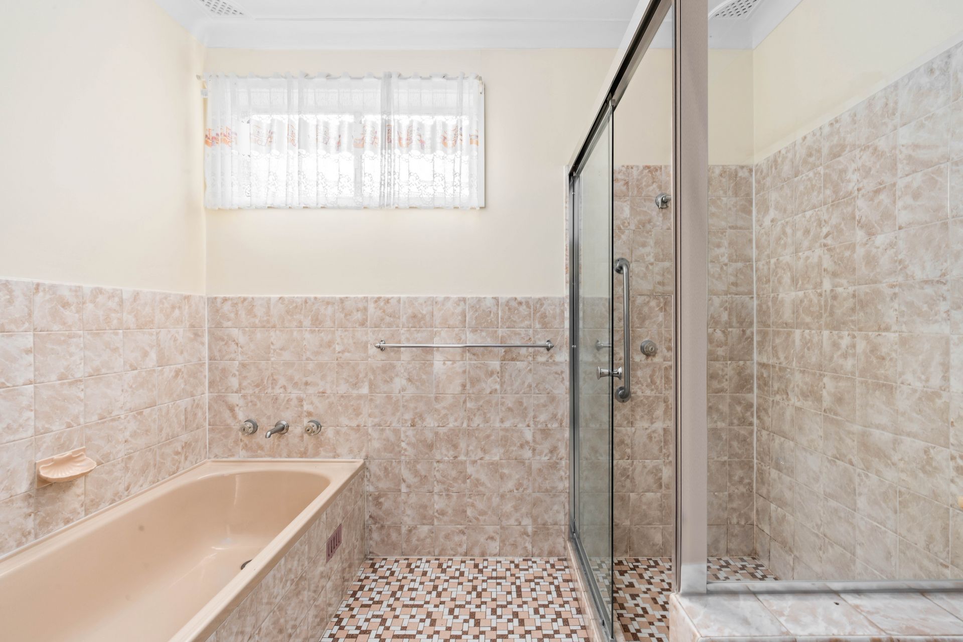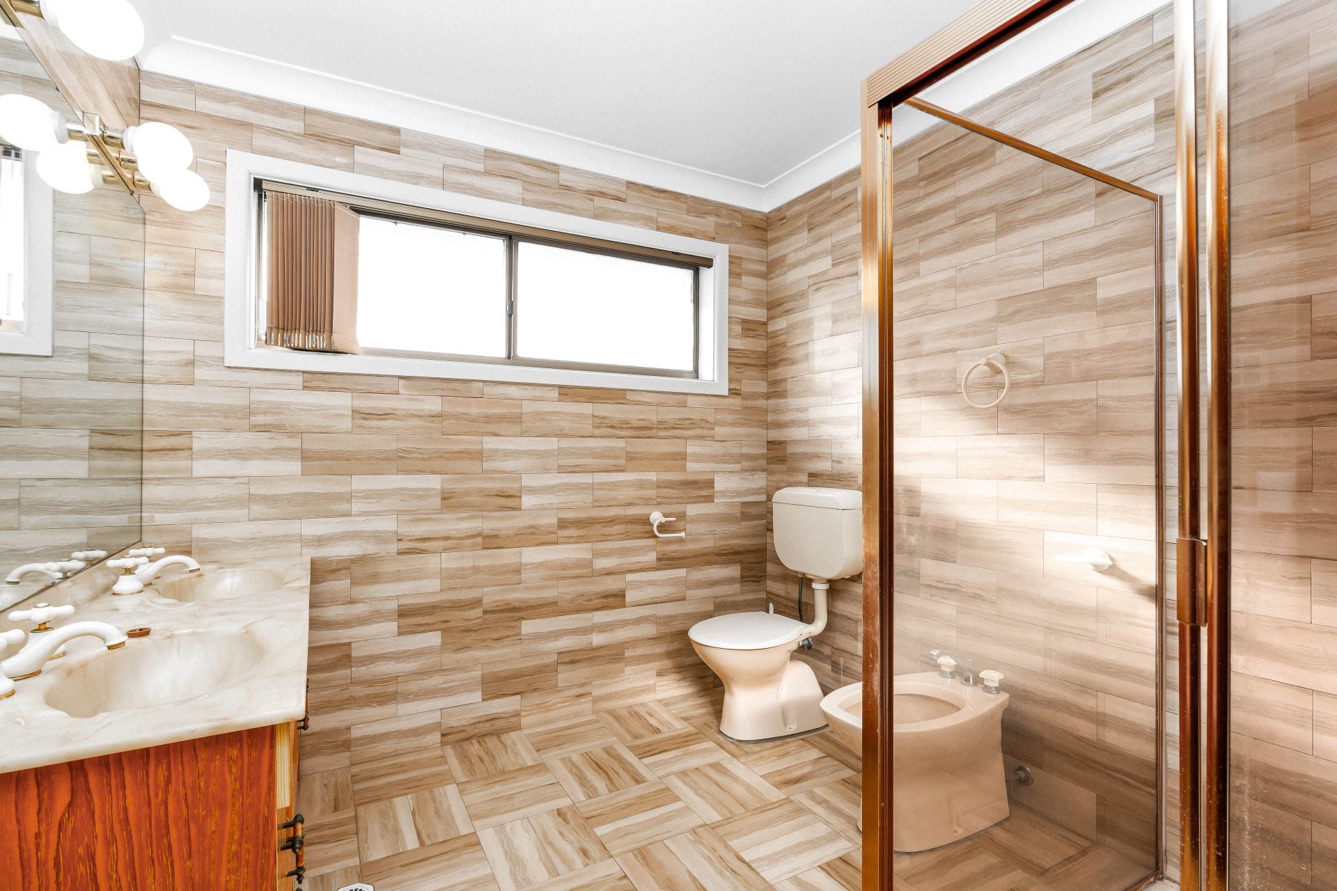 * Marble tiled bathroom