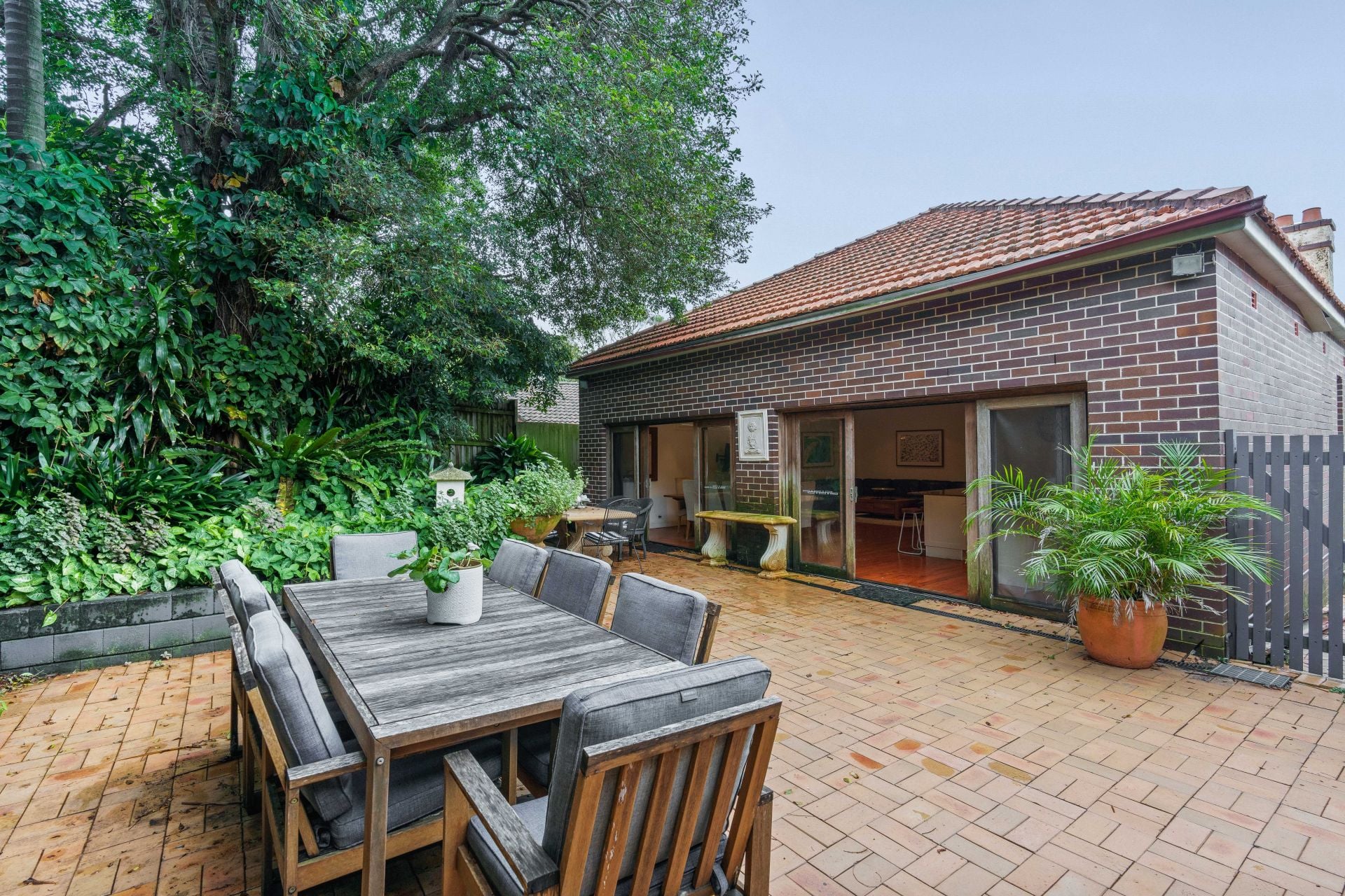 * Sundrenched paved back yard, perfect for entertaining