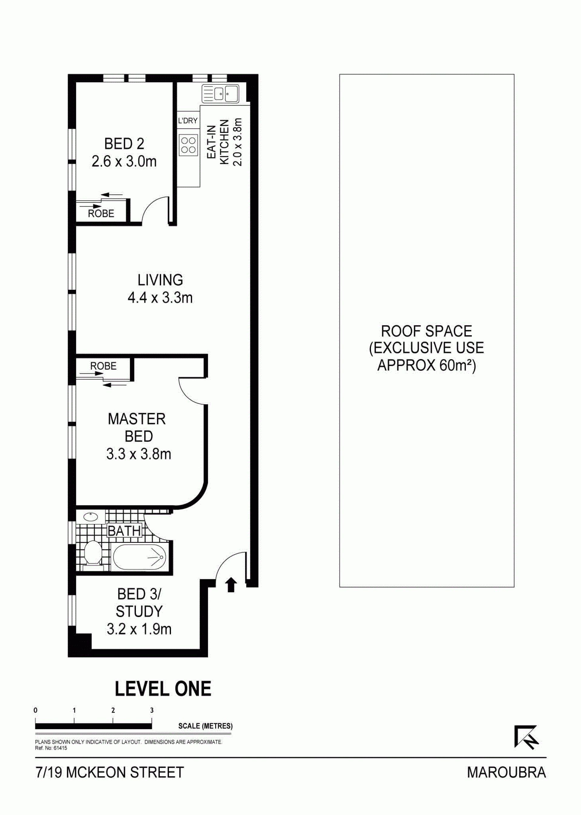 - Total size of the unit including roof space is 126 sqm approx