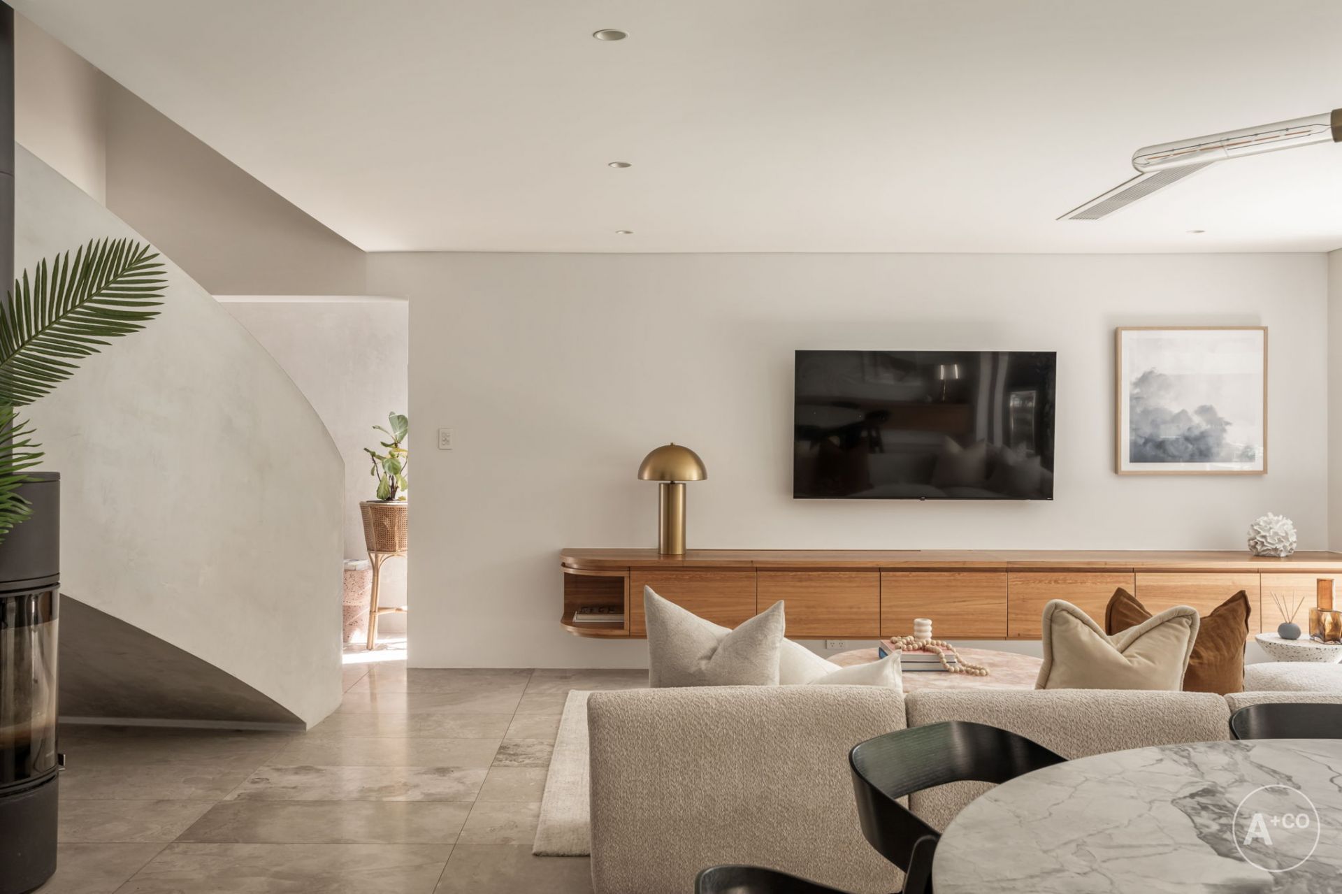 + Wood f/place, Blackbutt TV unit, electro-touch/soft close joinery