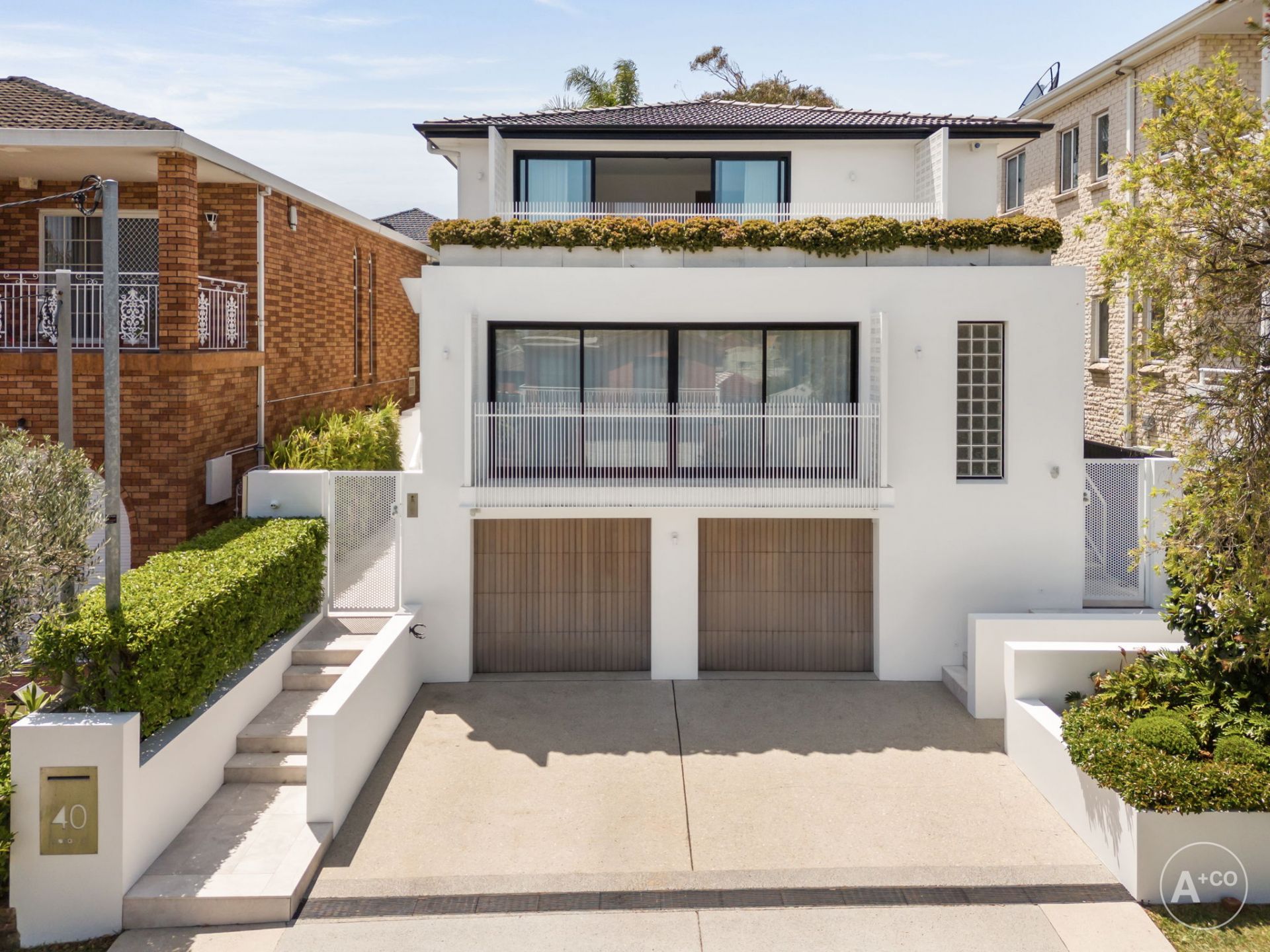 This stunning home has been impeccably crafted to the highest specifications, displaying mid-century inspired living zones that transition seamlessly to the north facing gardens, skylit terrace, outdoor heating and pool. Showcasing custom detailing including a bespoke moulded staircase, the residence is enhanced by a warm natural palette featuring the finest stone and timber finishes. Floor-to-ceiling glass doors and highlight windows take full advantage of the exquisite aspects, creating a secluded yet sun filled coastal oasis. Enjoy a lifestyle of exceptional convenience and tranquillity, with transport and the Pacific Square dining and retail hub just a short walk away.