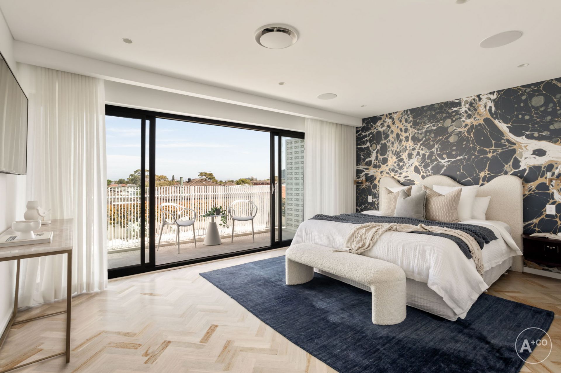 + Skylit terrace features a full barbecue kitchen with wine fridge