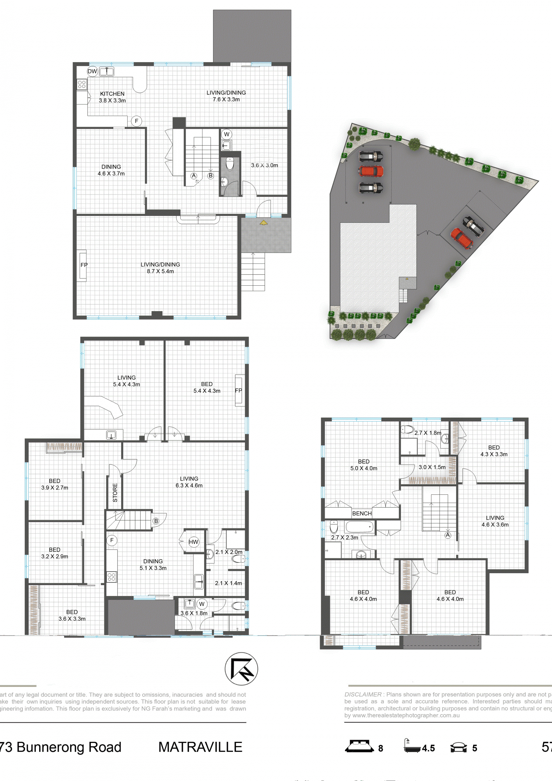 - Five bathrooms, sauna plus an internal and external laundry